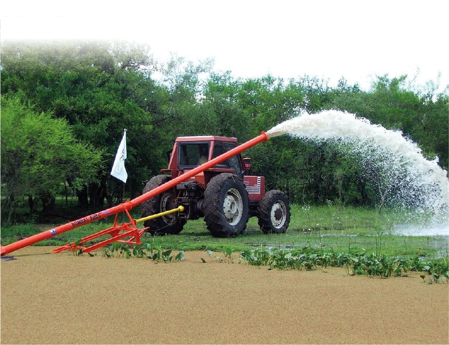 Bomba probada con efectividad con 500 m de tubería y una elevación de 15 m, obteniendo un caudal superior a 800.000 lts/h (800 m3/h).