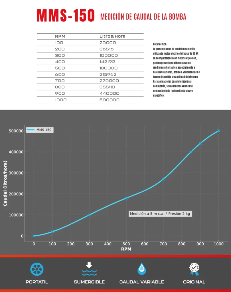 Ideal para mover grandes volúmenes de agua en pocas horas (por ejemplo emergencias hídricas).